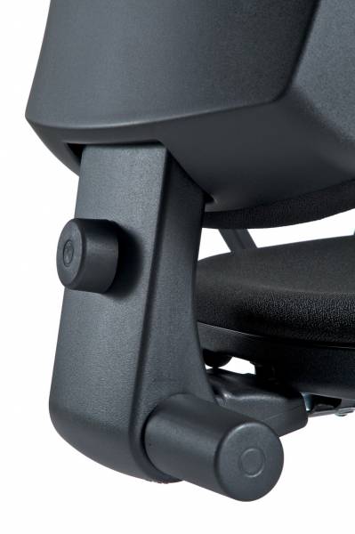 Ergonomicky tvarovaná chrbtová opierka a celoplastové opierky rúk sú cez kovové osadenie upevnené do konštrukcie stoličky.